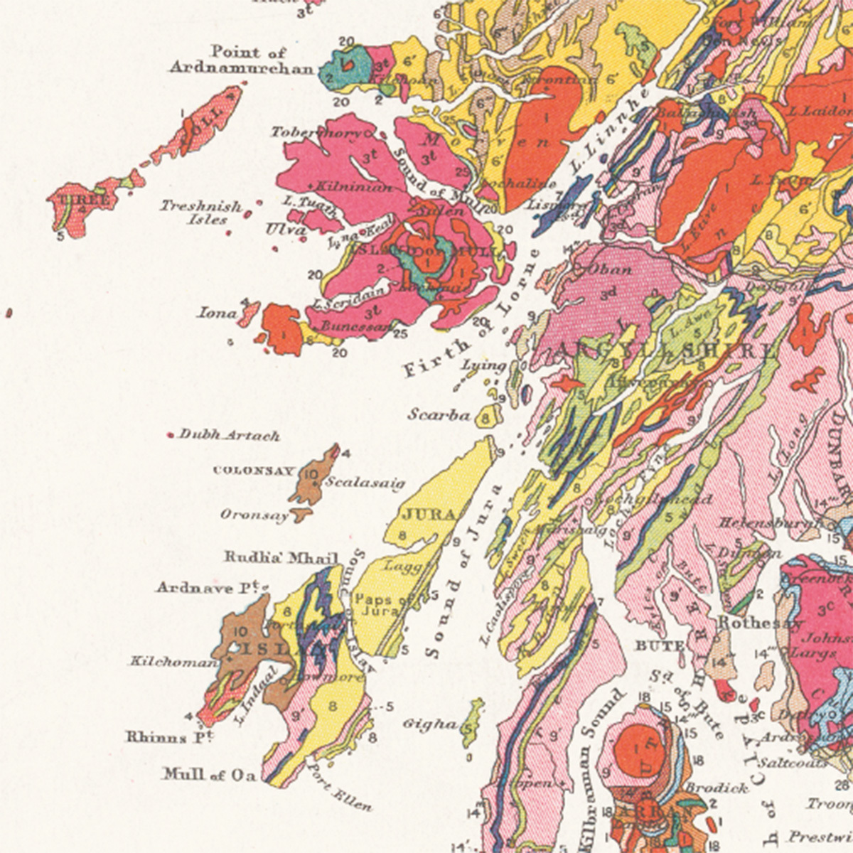 Our vintage Geological Map of the British Islands is based on the work of the Geological Survey, engraved by Ordnance Survey, and first published in 1904.